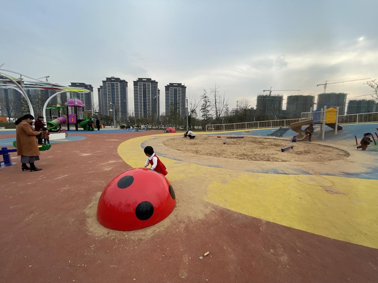 在正式驗(yàn)收完之后,公園對(duì)外開放了部分景觀,吸引了廣大市民前來游玩,漫步公園跑道,聆聽花草絮語。幼童奔跑在草坪沙坑,樂此不疲;青年拼搏在籃球場之上,揮灑汗水;彩色玻璃如蟬翼,早有少女于此處拍照留念;林中小徑通幽處有一四角方亭,卻是歇腳聽曲的好去處。白天褪去了它的顏色,夜色拉開了它的帷幕,公園里彩燈高照,于高處俯瞰而下,星光點(diǎn)點(diǎn),霓虹閃耀。光影之間,似蝴蝶似芍花的圖案便清晰的呈現(xiàn)在你的眼前;明暗之處,溫柔朦朧的氣質(zhì)撲面而來。你很難想象,半年前,這里還尚是一片亂林,樹木凌亂,雜草叢生。我們見證了它的改變,我們參與了它的改變。