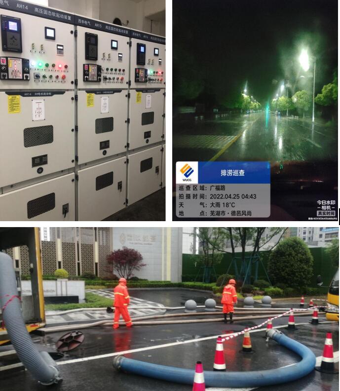 “21點(diǎn)21分,請(qǐng)各路段排澇應(yīng)急責(zé)任人,做好上路巡查準(zhǔn)備。”“22點(diǎn)28分,弋江泵站,夜間開機(jī)排水。騰空前池水位,為突發(fā)降雨做準(zhǔn)備!”“凌晨3點(diǎn)40分,桂花橋泵站開機(jī)排水。”“凌晨4點(diǎn)47分,政通公司巡查廣福路,路面無(wú)積水,通行正常。”“凌晨5點(diǎn)01分,汀海壹品,公交站牌,已積水,有人員值守,泵車正在助排。”“凌晨5點(diǎn)02分,政通公司巡查銀湖北路,天門山路站路面存在積水,已安排隊(duì)伍排水,保證路面正常通行。”“凌晨6點(diǎn)13分,排澇泵車汀海壹品段排水中,路面積水已下降不少,持續(xù)關(guān)注中。”……2022年4月24日晚,蕪湖城區(qū)再次遭遇暴雨夜襲,城建集團(tuán)工作群里防汛信息頻繁閃爍,而這些信息背后,正是一個(gè)個(gè)堅(jiān)守奮戰(zhàn)在雨夜中的城建集團(tuán)員工。艱難的疫情防控阻擊戰(zhàn)剛剛?cè)〉秒A段性勝利,城建集團(tuán)的員工們還未來(lái)得及體會(huì)來(lái)之不易的自由,便又開始投入到緊張的防汛工作中。