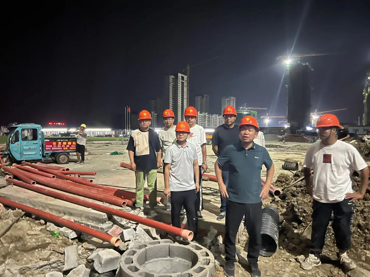 在楊總的統(tǒng)籌下,各位同事思路清晰,現(xiàn)場指揮調(diào)度不見一絲慌亂,充分利用吃飯時間開展碰頭會,交流工作計劃,協(xié)調(diào)各交叉作業(yè)面。每天傍晚楊總帶領(lǐng)各區(qū)域管理人員去全場各處查看施工進度情況,根據(jù)既定的施工安排,把握一天的施工進度。到了夜晚,現(xiàn)場依舊燈火通明,如若白晝,各單位各部門按照排好的計劃,有條不紊地進行施工作業(yè),凝心聚力保目標。相信在大家的努力奮斗下,我們必然能夠圓滿完成任務(wù),給集團,給亳蕪園區(qū),給亳州市交上一份滿意的答卷。人類的贊歌是勇氣的贊歌,而城建人的贊歌是奮斗者的贊歌,時間會帶給我們最好的答案。