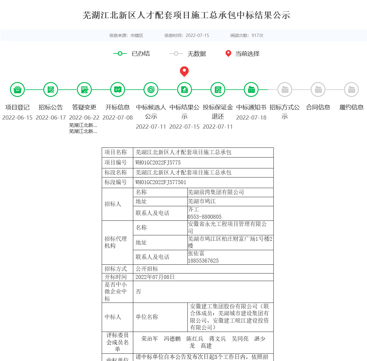 爍玉流金,火熱七月。由安徽建工、蕪湖城建、皖江建投組成的聯(lián)合體中標了蕪湖江北新區(qū)人才配套項目,中標價4.58億元。