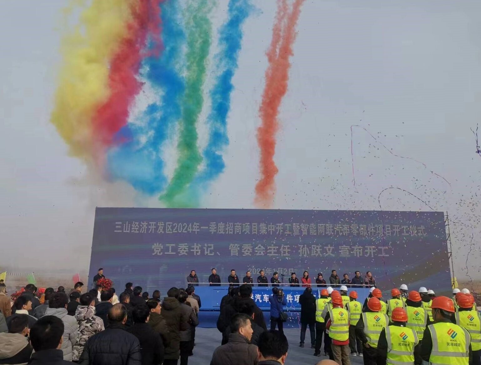 1月2日上午,蕪湖市三山區(qū)舉行三山經(jīng)濟(jì)開發(fā)區(qū)2024年一季度招商項(xiàng)目集中開工暨智能網(wǎng)聯(lián)汽車零部件項(xiàng)目開工儀式,三山經(jīng)濟(jì)開發(fā)區(qū)黨工委書記、管委會(huì)主任孫躍文,三山經(jīng)濟(jì)開發(fā)區(qū)黨工委副書記、管委會(huì)常務(wù)副主任楊燕,三山經(jīng)濟(jì)開發(fā)區(qū)黨工委委員、管委會(huì)副主任方序保,安徽中江城建集團(tuán)董事長朱志福出席。