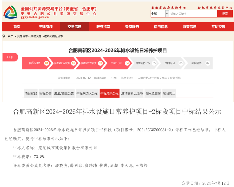 7月12日,蕪湖城建集團(tuán)成功中標(biāo)“合肥高新區(qū)2024-2026年排水設(shè)施日常養(yǎng)護(hù)項(xiàng)目”,該項(xiàng)目涵蓋了多個(gè)方面的工作,包括但不限于排水管網(wǎng)的巡查、清潔、維修保養(yǎng)以及汛期的排水設(shè)施應(yīng)急處置等。